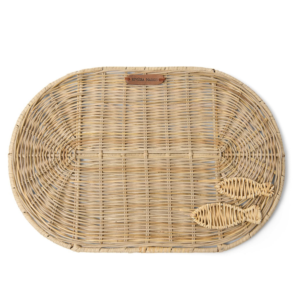 De Rustic Rattan Fish Placemat brengt een natuurlijke en speelse touch naar je gedekte tafel. Deze handgemaakte placemat van rattan is voorzien van twee subtiele decoratieve visjes, wat zorgt voor een charmant en karaktervol detail.