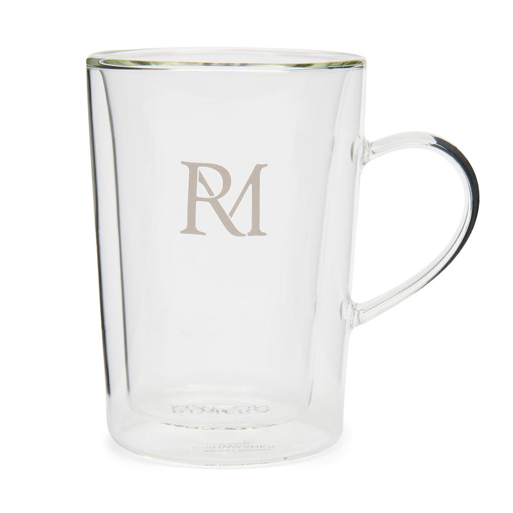 Het RM Monogram dubbelwandig glas is een verfijnde keuze voor elke gelegenheid. Gemaakt van hoogwaardig, transparant glas met een zilveren RM logo, biedt het een elegante uitstraling. Het innovatieve dubbele wandontwerp zorgt ervoor dat warme dranken langer heet blijven en koude dranken verfrissend koel. Met een inhoud van 275 ml is dit glas ideaal voor dagelijks gebruik en een uitstekende aanvulling op je servies.