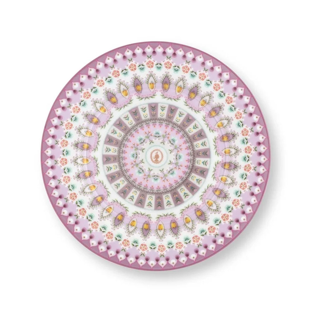 Dit gebaksbordje is onderdeel van onze Lily & Lotus collectie. Het bordje is versierd met een caleidoscopische print, bestaande uit honderden kleine bloemetjes en blaadjes in pasteltinten. Lily & Lotus is het eerste servies in de collectie van Pip Studio dat vaatwasser-, magnetron- en ovenbestendig is.