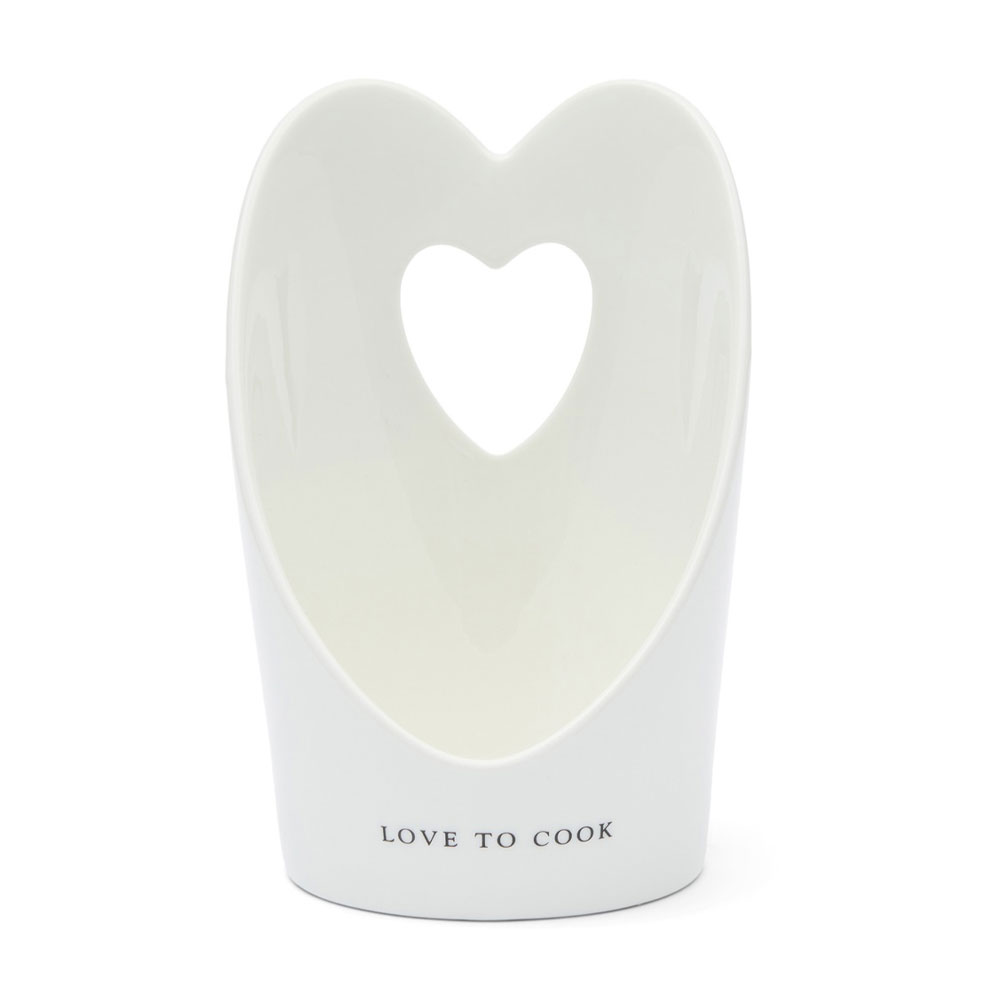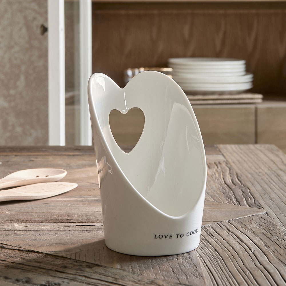 Nooit meer vieze lepels op het aanrecht met deze lepelhouder. De houder heeft de vorm van een hart en is van porselein dat met de hand is bewerkt. Een extra leuk detail is het uitgesneden hart. In deze serie zijn verschillende kookaccessoires verkrijgbaar.