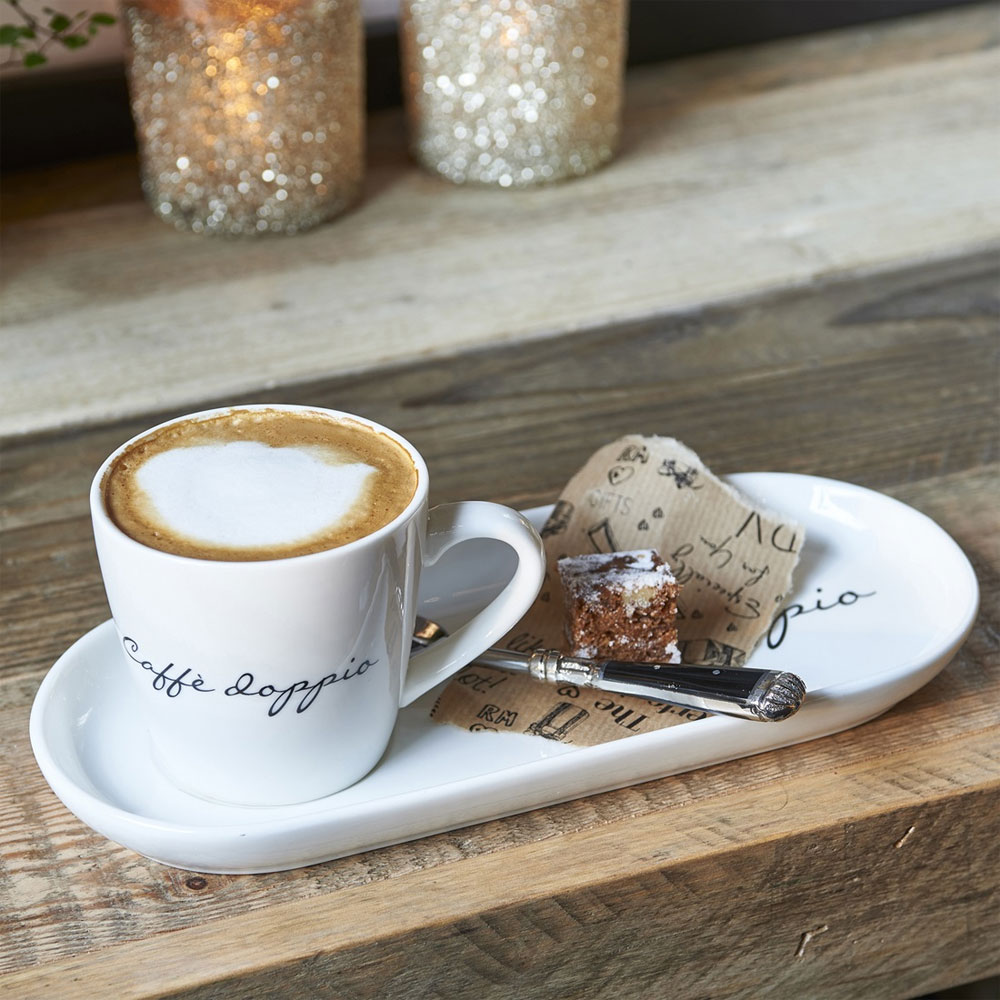 Ervaar het echte Italiaanse koffiemoment met de Caffè Doppio van Riviera Maison. Deze elegante kop en plate in fris wit zijn perfect voor iedere koffieliefhebber – van een intense espresso tot een romige cappuccino of een dubbele espresso.
