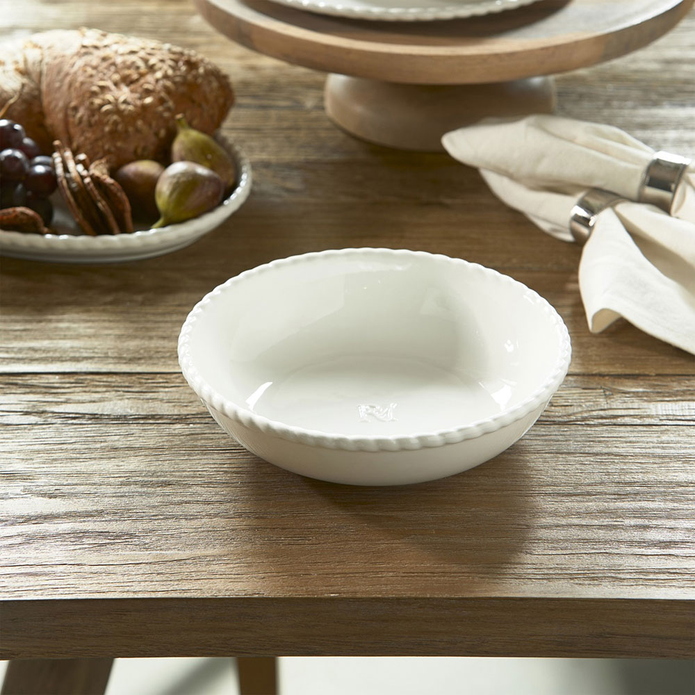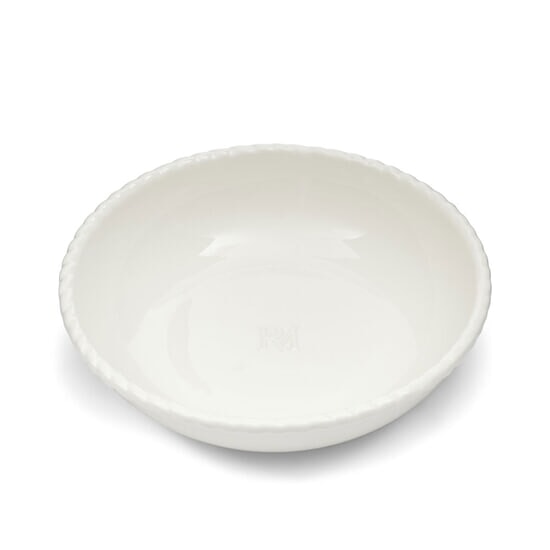 Voeg wat elegantie toe aan je dinertafel met het prachtige Elegant Twist serveerschaal. De gevlochten rand geeft deze schaal een speelse,verfijnde uitstraling. Het RM Monogram logo is subtiel geëmbosseerd, wat het bord extra stijlvol maakt. Perfect voor een gezellig diner met vrienden en familie. Deze porseleinen schaal heeft een dia van 24cm. Maak je tafelsetting compleet met de mooie Elegant Twist serie. Dit artikel is geschikt voor de magnetron.