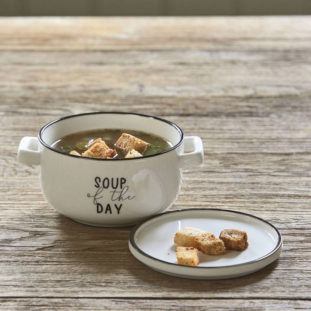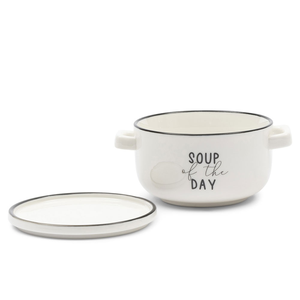 Geniet van een heerlijke kom dampende soep met deze My Favourite Soup Bowl. De kom wordt geleverd met een bijbehorende deksel die ook als bordje kan dienen, wat extra praktisch is voor elke maaltijd. Het porseleinen materiaal voegt elegantie toe aan je tafel, terwijl de speelse tekst ‘Soup of the Day’ een charmant detail geeft. Perfect voor een casual lunch met vrienden of een ontspannen diner thuis.