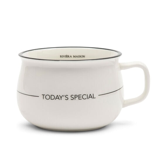 Geniet dagelijks van je favoriete soep met de Today’s Special Soup Bowl van Riviera Maison. Deze stevige kom van wit porselein heeft een groot handvat, zodat je je vingers veilig houdt. Het subtiele decoratieve detail van twee zwarte lijnen – één halverwege en één aan de bovenkant – geeft de kom een stijlvolle en moderne uitstraling.