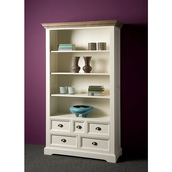 De boekenkast biedt naast voldoende ruimte voor uw boeken ook nog handige opbergladen.