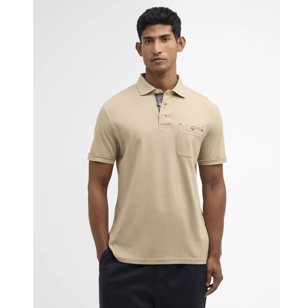 Heren Polo Tailored Premium Corpatch Washed Stone van Barbour