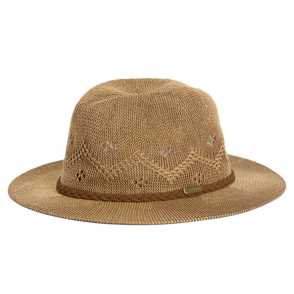 Geef elke zomerse outfit een zorgeloze, bohemienachtige look met de Barbour Flowerdale trilby hoed. De hoed heeft een geweven, gehaakt patroon en een ongestructureerde rand voor een relaxte uitstraling, en is verkrijgbaar in olijfgroen, crème of marineblauw voor een moeiteloze coördinatie. Voor de perfecte finishing touch heeft de buitenste kroon een gevlochten leren hoofdband met een metalen Barbour logobadge.