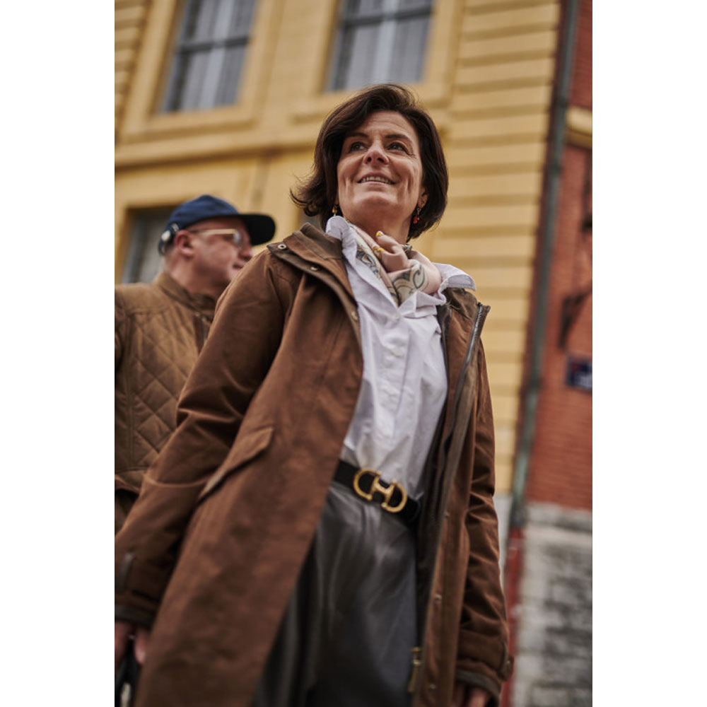 De getailleerde Chelsea,gebaseerd op onze populaire Kensington jas, biedt dezelfde bescherming en duurzaamheid, maar is korter en daarom handiger voor dagelijks gebruik. Deze regenjas is ademend, wind- en waterdicht, dus perfect om te genieten van de wandeling met uw hond, ongeacht het weer. Deze ontbrak nog in uw garderobe! Ruglengte maat M: 96 cm.