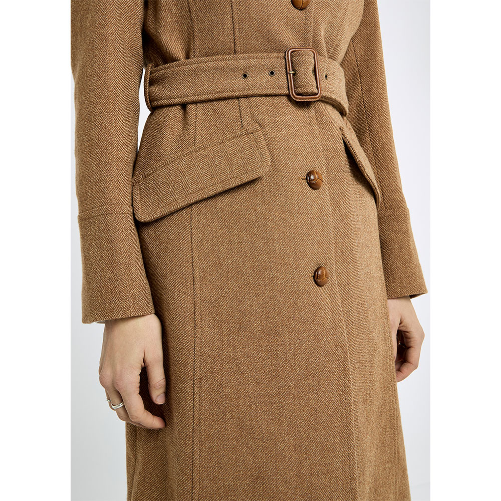 Geef je garderobe een upgrade met de Brookvale tweedjas, een elegant en getailleerd kledingstuk dat je silhouet perfect flatteert. Deze lange jas is prachtig gesneden, met een vrouwelijke belijning in de taille die sierlijk uitloopt naar de zoom.