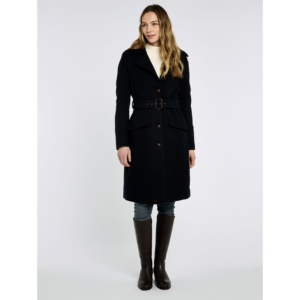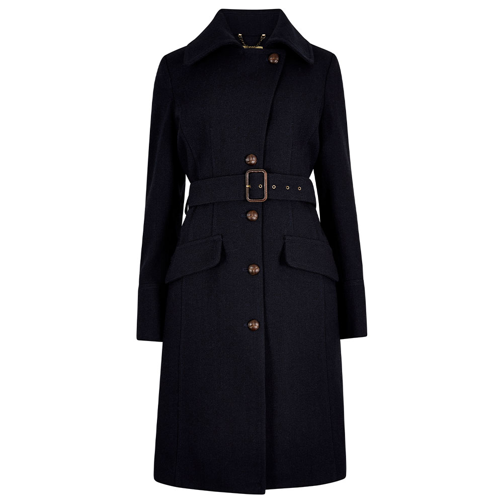 De jas is gevoerd met een luxe Dubarry jacquard voering en heeft een gestreepte mouwvoering, wat zorgt voor een extra vleugje elegantie. De verfijnde kraag en revers kun je zowel open als gesloten dragen, zodat je de look aanpast aan elke gelegenheid. Afgewerkt met karakteristieke knopen en een bijpassend ceintuur, is de Brookvale de ideale keuze voor een tijdloze, stijlvolle uitstraling. Deze jas is hét statement piece dat elke outfit compleet maakt.