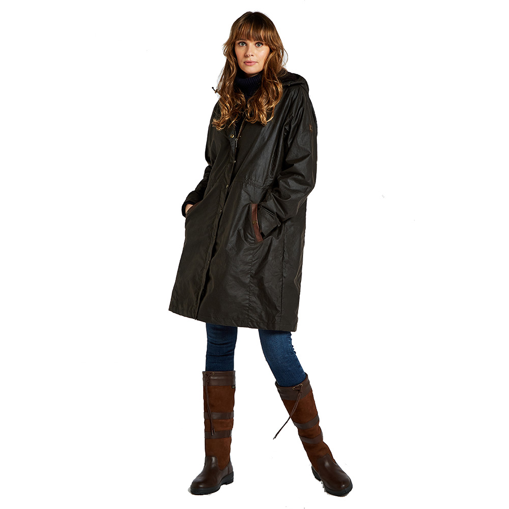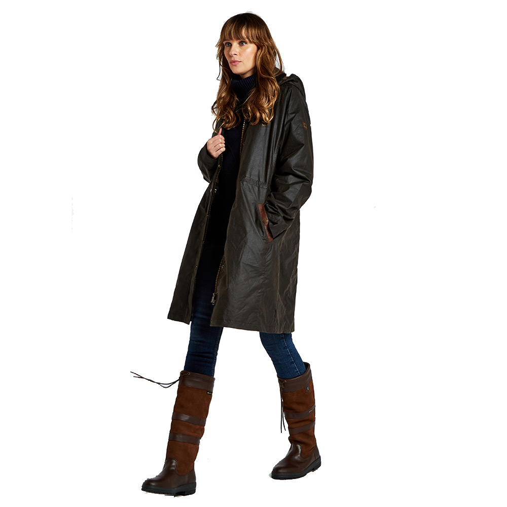 Deze mooie, gestroomlijnde waxjas van Dubarry is helemaal water- en winddicht door het wax effect.