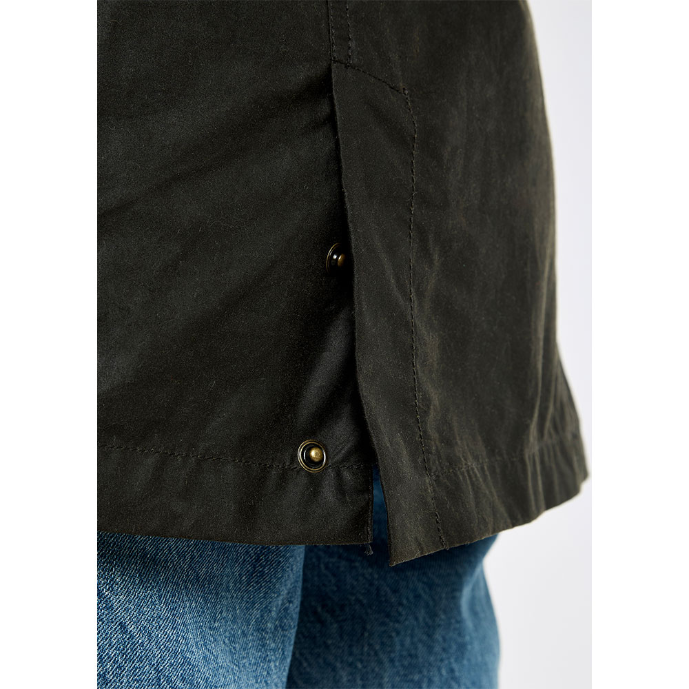 Onze Gandon dicht geweven waxjas van katoen met een zijdezachte silkwax-afwerking combineert comfort en een verfijnde snit met een klassieke uitstraling. Dankzij de meerdere zakken en het ceintuurontwerp heeft de damesjas een functionele, utility-uitstraling, terwijl de leren details en de gevoerde panelen met zachte sherpa een eigentijdse, luxe touch geven.