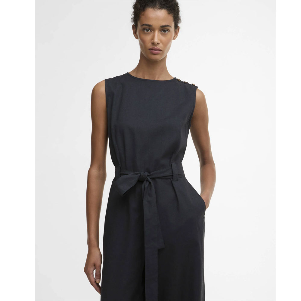 De Barbour Gabby Jumpsuit is een modern kledingstuk dat niet mag ontbreken in je garderobe. Hij is gemaakt van een lichtgewicht, ademende stof voor een moeiteloze stijl. Met zijn mouwloze ontwerp, flatterende strik in de taille en wijde pijpen combineert hij structuur met gemak. Afgewerkt met subtiele knoopdetails op de schouders en een strakke halslijn, is dit veelzijdige kledingstuk perfect voor zowel casual dagen als chique gelegenheden.