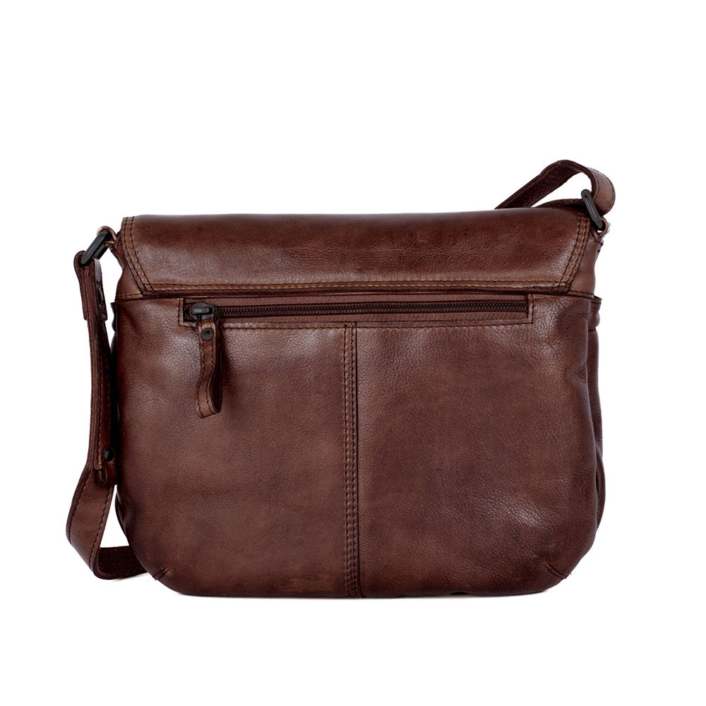 Kleur: Donkerbruin Afmeting: 26 x 3,5 x 21 cm Materiaal: Apache leer Exterieur: hoofdvak met rits en flap met magneetsluiting, verborgen voorvak met magneetsluiting, achtervak met rits, decoratie kwastjes Interieur: ritsvak, insteek vak, 2 pennenlusjes, sleutellusje Hengsels en banden: vaste/verstelbare lange schouderband