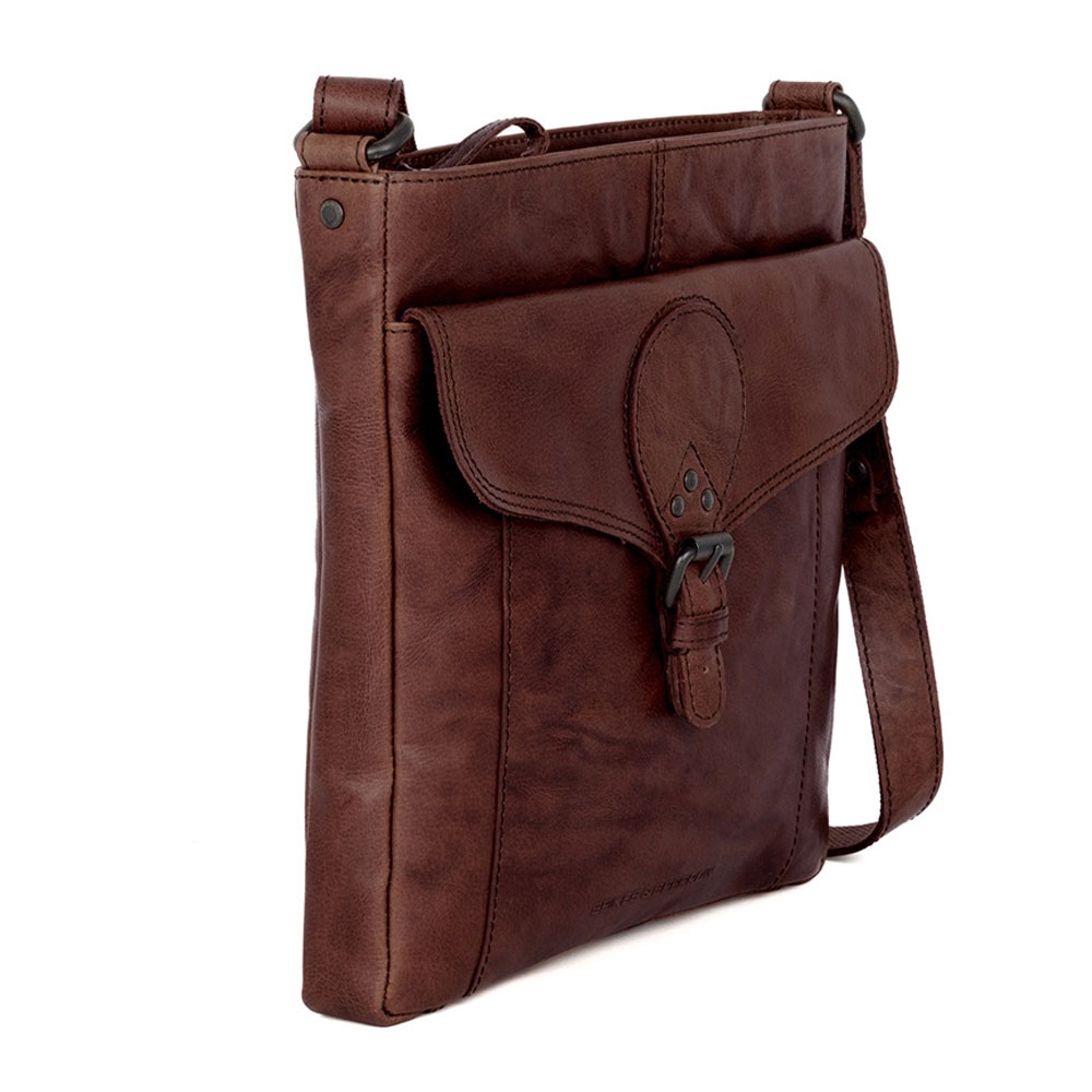 Crossbody tas Millie straalt karakter en vakmanschap uit. De unieke ronde tap met gesp en rivets zorgt voor een speels en eigentijds accent, terwijl het ontwerp tegelijkertijd een subtiel western gevoel oproept. Het samenspel van leer, studs en de ronde gesp doet denken aan de robuuste charme van het wilde westen, waardoor de tas niet alleen eigentijds maar ook stoer en karaktervol oogt.