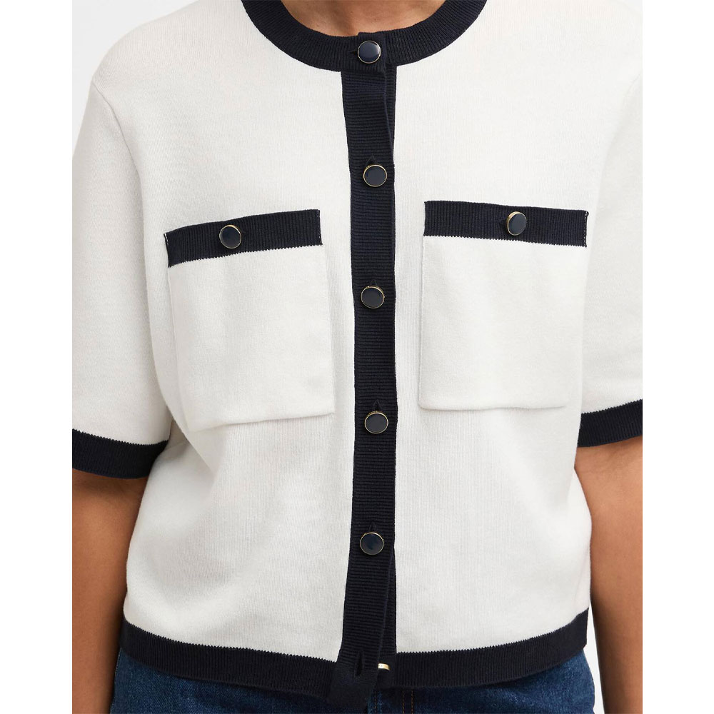 Het Barbour Sloane vest met korte mouwen is een lichtgewicht, veelzijdig gebreid kledingstuk van 100% katoen voor ademend comfort. Met contrasterende geribde boorden, opgestikte zakken en geëmailleerde knopen met merklogo op de knoopsluiting en zakranden combineert het subtiele details met een traditionele stijl. Dit vest met korte mouwen is perfect om te combineren met andere kledingstukken of om alleen te dragen. Het biedt het tijdloze vakmanschap van Barbour met een eigentijds, ontspannen silhouet dat ideaal is voor het tussenseizoen.