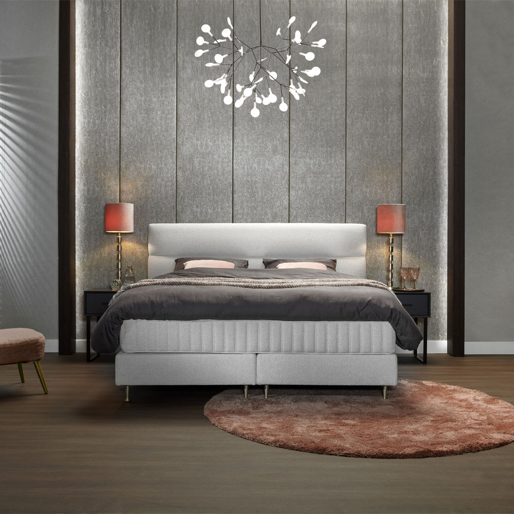 Net als een luxe hotelsuite straalt de Ligne boxspring rust en elegantie uit, zelfs met zijn stoere uitstraling. Het serene gevoel wordt versterkt door rustige horizontale lijnen en een zachte, hoogwaardige afwerking. Dankzij de ruime keuze aan stofferingen en potentsets kun je het ontwerp volledig aanpassen aan je eigen stijl. Voor een complete slaapkamerervaring is de Ligne ook beschikbaar met bijpassende accessoires zoals nachtkasten, voorzetbanken en opbergbanken.
