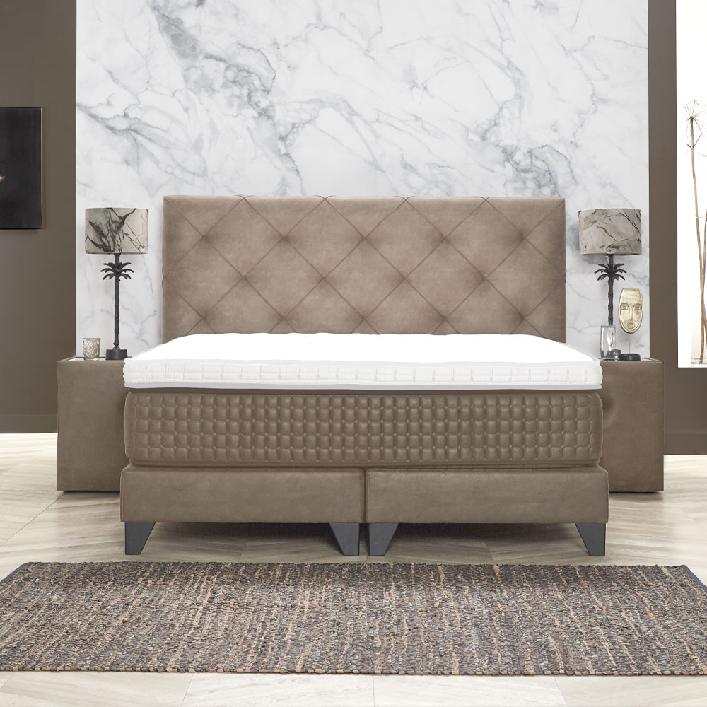 De boxspring bestaat uit een boxspringonderstel, matras en topdekmatras, zorgvuldig afgestemd op uw lichaam voor optimale ondersteuning. Het luxueuze design, strakke lijnen en elegant capitonneer-hoofdbord geven elke slaapkamer een chique uitstraling. Personaliseer je Magnifique met diverse stoffen, potensets en bijpassende accessoires zoals nachtkasten, banken en opbergoplossingen.