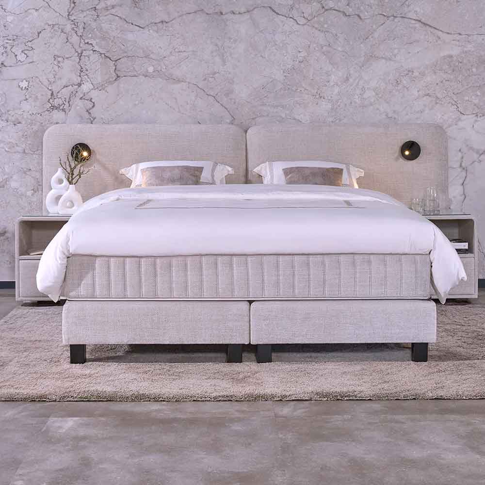 Met dit ontwerp brengt Serta de verfijning van een vijfsterrenhotel rechtstreeks naar jouw slaapkamer. Het is meer dan een bed; het is een architecturaal statement waarin het royale hoofdbord en de zwevende nachtkastjes naadloos in elkaar overvloeien. Elk detail is met precisie gekozen om een sfeer van geborgenheid en tijdloze klasse te creëren. Hier ontwaak je niet alleen in luxe, je komt thuis in een oase die altijd in balans is.