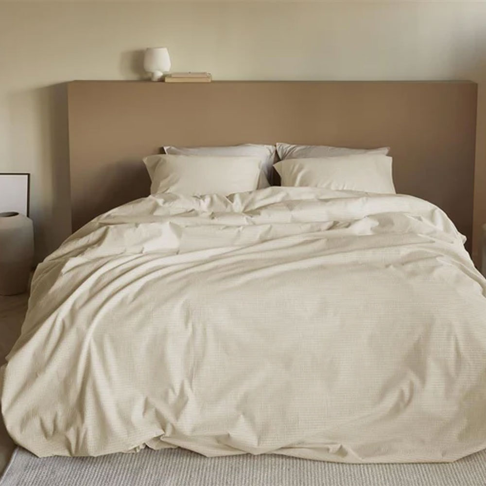Ben je op zoek naar een mooi basic dekbedovertrek voor in je slaapkamer? Dan is het Summer dekbedoverterk van Beddinghouse. Een eenvoudig ontwerp, maar een prachtige uitstraling. Summer is uitgevoerd in een zand kleur. seersucker stof, een dunne rimpelige stof . De stof is los geweven met een zeer fijn garen. De stof is licht en ademend en door het sterk vochtabsorberende en goed ventilerende vermogen zorgt het dekbedovertrek voor een aangenaam gevoel. Ook voelt het dekbedovertrek heerlijk zacht en soepel om het lichaam. Het dekbedovertrek is comfortabel en luchtig, waardoor het dekbedovertrek bijdraagt aan jouw slaapcomfort. Duurzame verpakking - Het dekbedovertrek is mooi en duurzaam verpakt in een stoffen tasje gemaakt van hetzelfde materiaal als het overtrek. Je kunt het tasje eenvoudig hergebruiken. Over Beddinghouse - Beddinghouse is een Nederlands familiebedrijf dat gespecialiseerd is in het ontwerpen van trendy en stijlvol beddengoed. Elk seizoen bieden we een uitgebreide collectie dekbedovertrekken in prachtige kleuren, gemaakt van hoogwaardige materialen. Ons Assortiment - Bij Beddinghouse vind je niet alleen dekbedovertrekken, maar ook bedspreien, moltons, hoeslakens en badtextiel. Onze producten combineren stijl met comfort en duurzaamheid. Waarom Beddinghouse? - Innovatief Design: Altijd volgens de laatste trends. Hoogwaardige Kwaliteit: Duurzame en comfortabele materialen. Groot Assortiment: Voor iedere smaak een passend product. Hoogwaardige kwaliteit Het dekbedovertrek is gemaakt van 100% katoen seersucker. Het overtrek heeft over de gehele breedte aan beide zijden een dubbele instopstrook. De totale lengte van het dekbedovertrek is 250 cm. Dit is extra lang waardoor het dekbedovertrek gemakkelijk onder het matras gestopt kan worden en koude voeten worden voorkomen. Het overtrek is geschikt voor dekbedden van 200 cm, 210 cm of 220 cm. Better Cotton Door katoenproducten te kiezen van ons, steunt u onze investering in de missie van Better Cotton. Dit product is ingekocht via een mass balance systeem en bevat daardoor mogelijk geen Better Cotton. Zie bettercotton.org/learnmore.