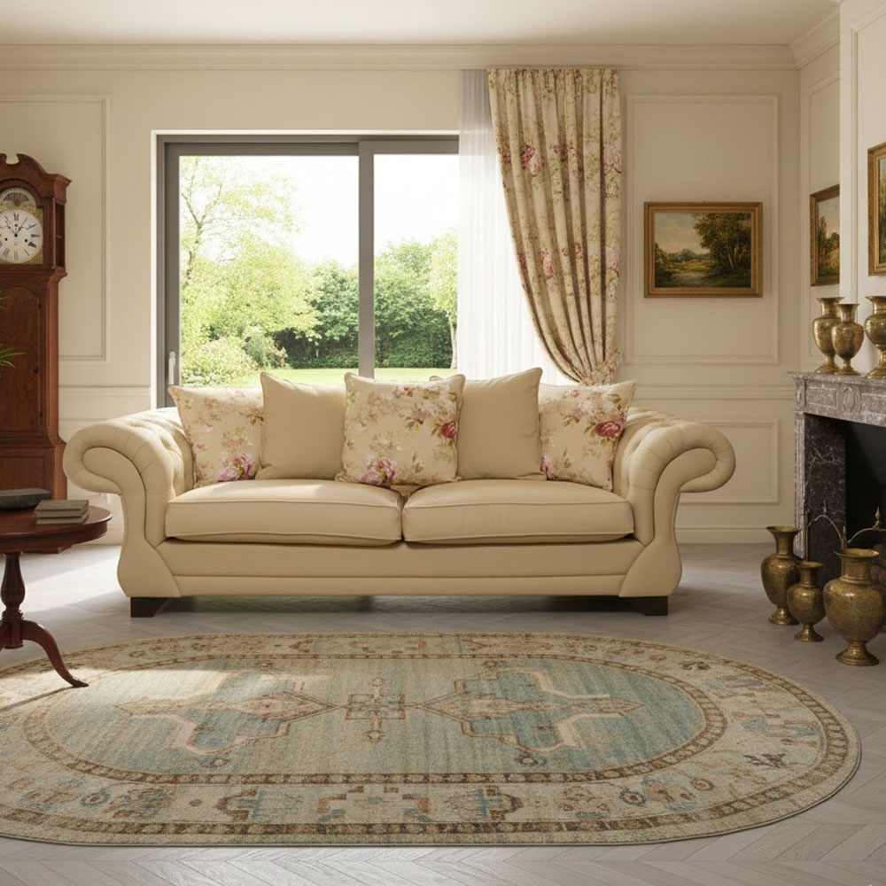 Royale Engelse bank voorzien van een heerlijke latexvulling en een gecapitonneerde armleuning wat ook nog eens zorgt voor een romantische uitstraling.