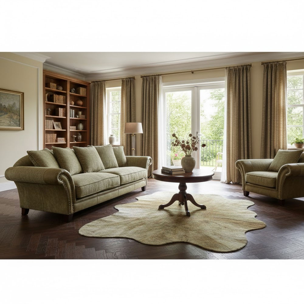 De armleuning zijn afgewerkt met siernagels voor een sierlijke uitstraling.