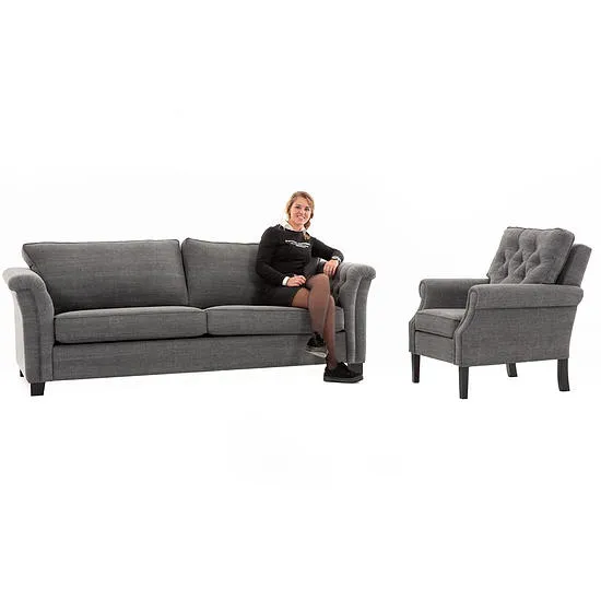 Landelijke romantische bank voorzien van gecapitonneerde armleuningen. Zitkussens zijn gevuld met koudschuim wat zorgt voor een stevige zitting. Ook leverbaar met latex vulling.