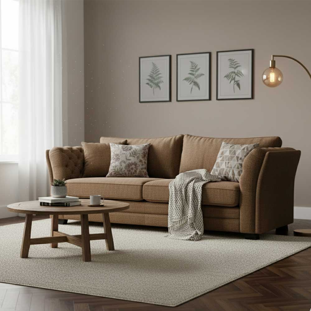 Gecapitonneerde bank wat zorgt voor een mooie landelijke uitstraling. De bank is tot in de details afgewerkt en heeft een heerlijk zitcomfort.