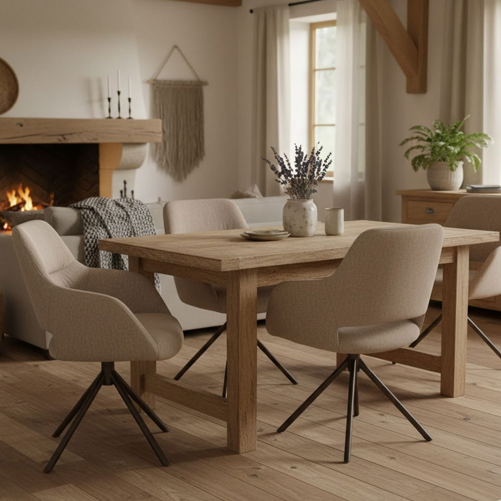 Ontdek de perfecte combinatie van modern design en ongekend comfort met deze elegante eetkamerstoel. De strakke lijnen en de hoogwaardige, gladde stoffering bieden een verfijnde uitstraling en optimale ondersteuning voor lange, gezellige avonden. Het unieke stervormige onderstel voegt een eigentijds accent toe en zorgt voor stabiliteit. Ideaal voor zowel dagelijks gebruik als speciale gelegenheden, deze stoel tilt uw eetruimte naar een hoger niveau.