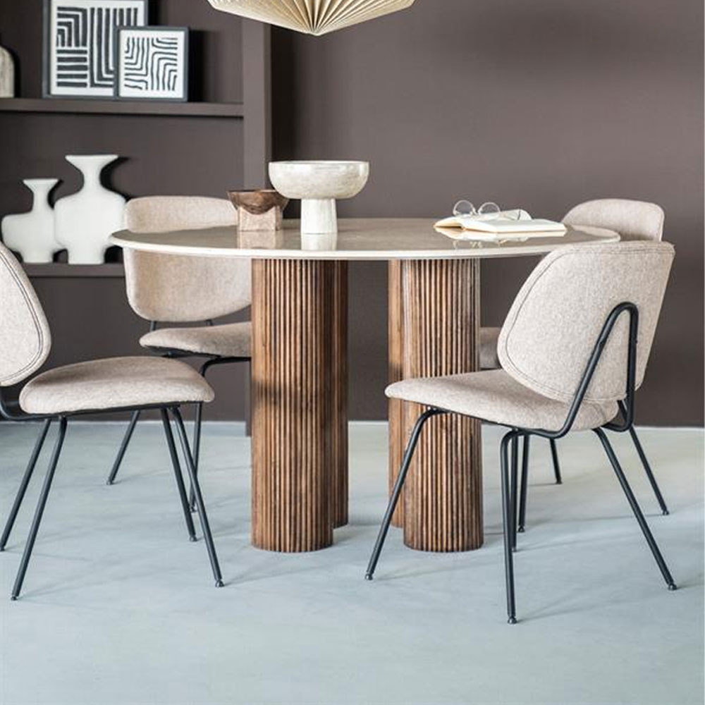 Eetkamerstoel Lynn is een trendy eetkamerstoel met een moderne uitstraling. De stoel is bekleed met zachte fletcher-stof voor extra comfort. Het frame is gemaakt van metaal en heeft een subtiele glanzende afwerking.