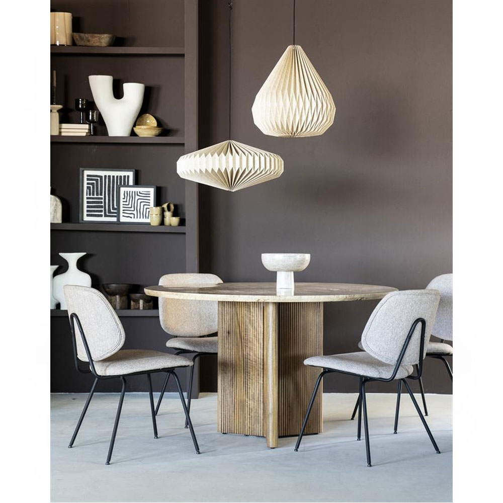 Eetkamerstoel Lynn is een trendy eetkamerstoel met een moderne uitstraling. De stoel is bekleed met zachte fletcher-stof voor extra comfort. Het frame is gemaakt van metaal en heeft een subtiele glanzende afwerking.