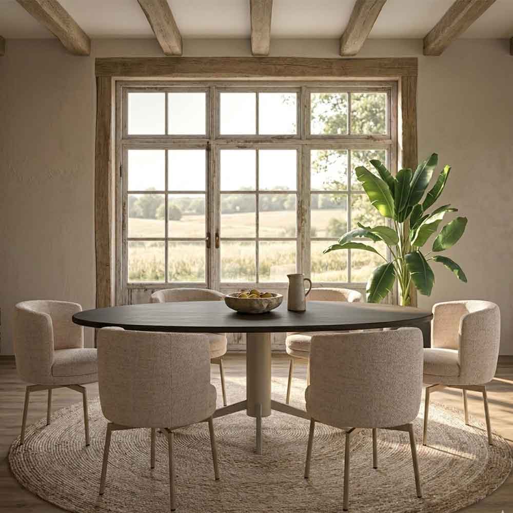 De Mito-stoel straalt een moderne en elegante uitstraling uit dankzij zijn ronde rugleuning. Het draaibare onderstel zorgt voor comfortabel zitgemak, waardoor de stoel perfect in elke ruimte tot zijn recht komt.