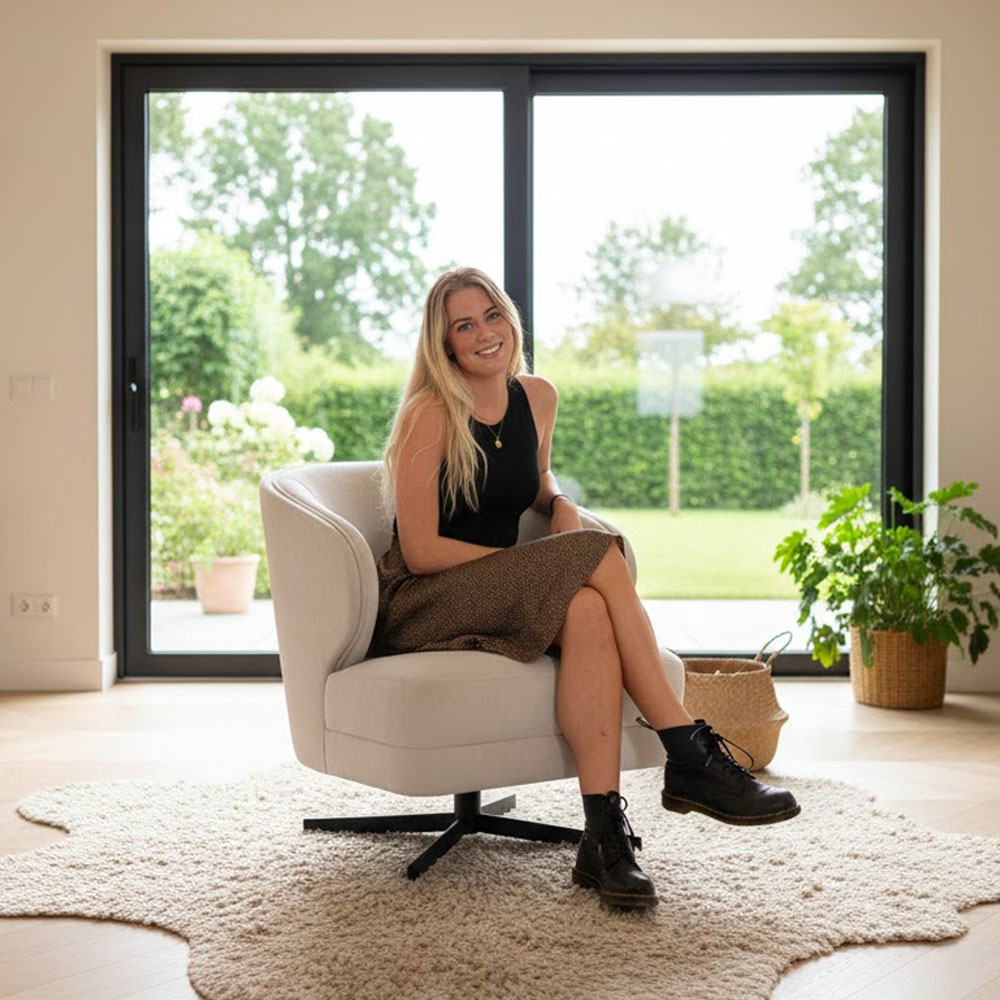 Heerlijk comfortabele fauteuil, door zijn vormen heeft de fauteuil een modern landelijke uitstraling.
