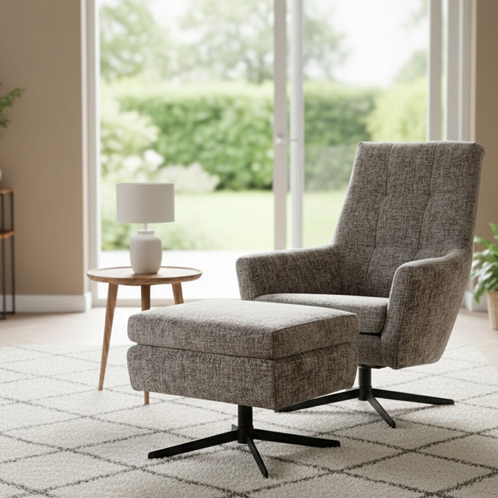 Comfort staat centraal bij Dea. Letterlijk zelfs, want naast een vaste poot is er ook een draaipootoptie beschikbaar. Leun lekker achterover met een kop koffie en je favoriete krant. Leg je benen op de bijpassende hocker en de ontspanning is compleet.