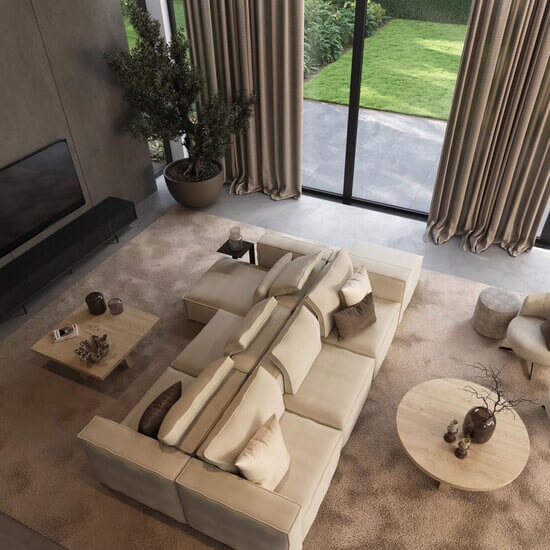 De op maat gemaakte Cliff bank combineert een krachtig en modern design met een stoere uitstraling. De royale arm- en rugleuningen, samen met de uitnodigende zit, maken het tot een echte blikvanger. De losse kussens voegen een speels accent toe en versterken het gevoel van nonchalante luxe.