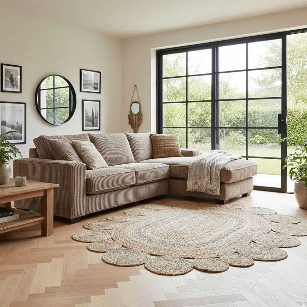 Heerlijke loungebank bekleed in een ribstof, uiteraard ook te bekleden in diverse andere stoffen.